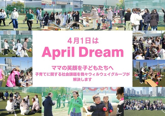 『ママの笑顔を子どもたちへ』という理念のもと、社会課題を解決すべく我々株式会社ウィルウェイは、4月1日を夢を発信する日にしようとする「April Dream」に賛同しています。