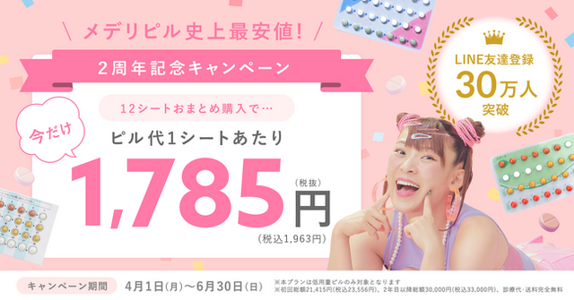 mederi株式会社(本社:東京都目黒区、代表取締役:坂梨 亜里咲、以下当社)は、当社が開発・運営する、オンラインピル診療サービス『mederi Pill(メデリピル)』の公式LINE友だち登録者数が累計30万人を突破するとともに、サービス提供開始から2周年を迎えたことをお知らせいたします。これを記念し、2024年4月1日から6月30日までの期間限定で、特別価格にてサービス利用いただける『新生活応援! mederi Pill 2周年キャンペーン』を開催いたします。