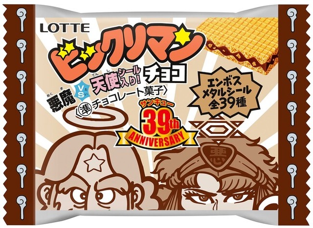 株式会社ロッテは4月23日(火)、ビックリマン悪魔VS天使シリーズ、39(サンキュー)周年記念商品として「ビックリマン悪魔VS天使 39th ANNIVERSARY」を発売いたします。本商品のシールは、ビックリマンとしては初挑戦となる「レトロ風」。上質感のあるエンボスメタルシール全39種で、ビックリマンイラストレーターが新たに描き下ろしたシール9種類もあります。パッケージはおなじみ、悪魔VS天使シリーズを象徴するデザイン2種類です。