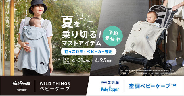 注目は、アウトドアブランド「WILD THINGS(ワイルドシングス)」とコラボレートしたベビーケープです。雨や日差しから赤ちゃんを守る夏用ケープが新登場いたします。
