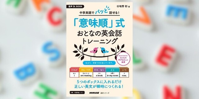 2024年1月に発売した『音声DL BOOK 中学英語でパッと話せる! 「意味順」式 おとなの英会話トレーニング』(田地野彰著)が、早くも増刷出来となりました。「中学、高校で英語を勉強したのに話せない」「英語になると言いたいことが口からスッと出てこない」といったお悩みを解決してくれる本書。「だれが」「する(です)」「だれ・なに」「どこ」「いつ」の5つのボックスを埋めるだけで、文法的に正しい英文が完成します。しかも、高度な文法用語は必要なし。中学3年間で学ぶ文法が総おさらいできるので、大人だけでなく、現役中高生のスピーキング対策にも最適です。