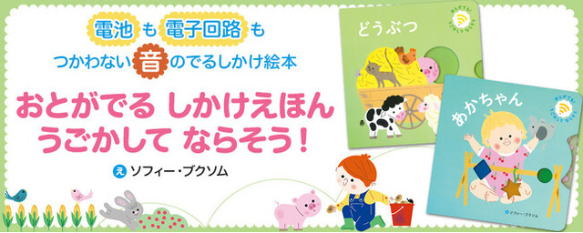 電池も電子回路も使っていないのに、しかけを動かすとあかちゃんの喜ぶ音が鳴ります。