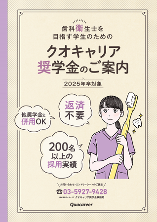歯科業界の人材採用支援を行う株式会社クオキャリア(本社:東京都豊島区)は、「歯科衛生士」を志す学生を支援する【給付型】奨学金制度「クオキャリア奨学金」の2024年度奨学生募集を開始いたしました。