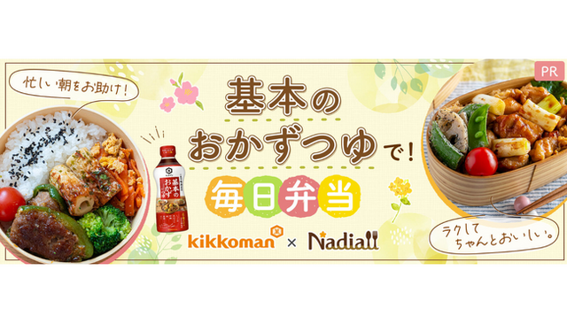 Nadia株式会社(東京都港区/代表取締役社長 葛城嘉紀 以下「Nadia」)とキッコーマン食品株式会社( 東京都港区/代表取締役社長 中野 祥三郎 以下「キッコーマン」)がタイアップし、特別企画ページ【忙しい朝をお助け!ラクしてちゃんとおいしい 基本のおかずつゆで!毎日弁当】を公開いたしました。