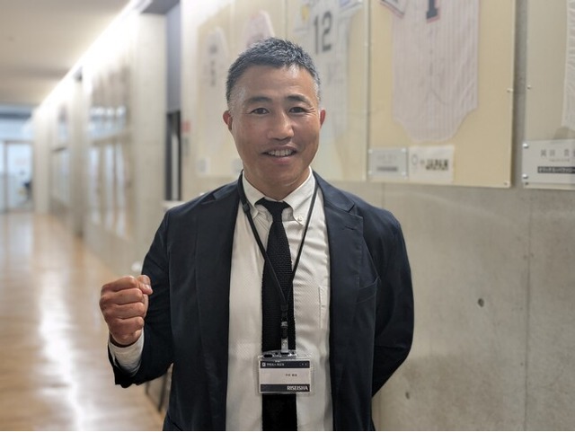 履正社高校ラグビー部のヘッドコーチに就任した作田敏哉氏(大阪府豊中市の履正社高校にて)