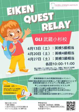 2024年度、GLI武蔵小杉校では、英語学習者向けの新しいイベントプログラム「Eiken Quest Relay」がスタートします。
