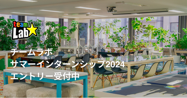 チームラボは、卒業年度を問わず大学院、大学、高専、短大、専門学校に在学中の方を対象とした就業体験型のサマーインターンシップを開催します。このインターンシップでは、チームラボが手掛けるWeb/アプリ開発、アート展示/空間演出など、実際のプロジェクトやインターンシップのために設計した課題を通して、チームラボのものづくりをオフィスで体験することができます。