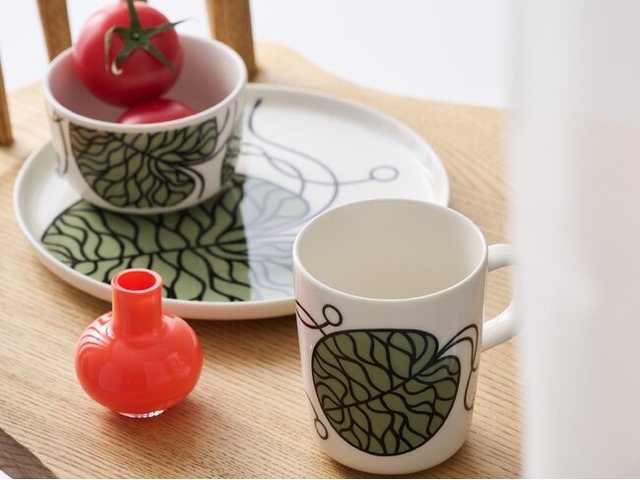本コレクションでは、オリーブグリーンのボットナのテーブルウェア3型が登場。人気の2.5dl マグカップ、2.5dl ボウル、20cm プレートがラインナップされます。
