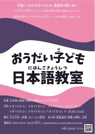 大正大学(学長:神達知純、所在地:東京都豊島区)の文学部日本文学科では、当学科の学生が中心となり、「おうだい子ども日本語教室」を開催しています(担当教員:中川祐治)。
