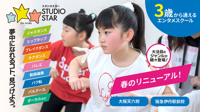 スタジオスター大阪天六校・阪急伊丹駅前校では、この春から「所属クラス」と「セレクトクラス」という『ハイブリッドメソッド』で、幼少期に大切な身体づくりと、子どもたちの好きなことや得意なジャンルを伸ばせるようにサポートいたします。