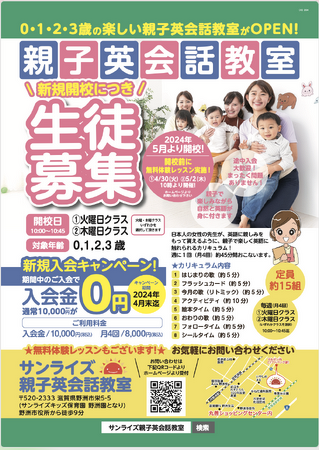 0・1・2・3歳の楽しい親子英会話教室が開校します♪エクシオジャパンで運営するサンライズキッズ保育園で実施している