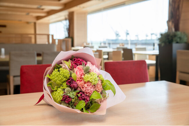 同プランでは、母の日を彩る特典として、ご夕食時に専任フローリストによる花束をご用意。またその場で記念撮影を行い、写真もプレゼントいたします。