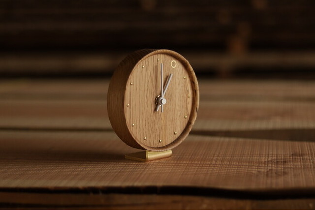 この置時計は、同級生の13人の環(わ)をテーマに作られました。時計の盤面には、12個の真鍮インデックスが埋め込まれています。1時間を1人とし、針が一周する12時間が仲間たち。次の1時間が自分となぞらえています。これから立ち向かう苦難の時に、「これまでの池田での大切な12時間があったことを 思い出してほしい」という想いがデザインに込められています。