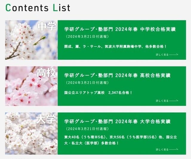 株式会社学研ホールディングス(東京・品川/代表取締役社長:宮原博昭)のグループ会社の株式会社学研塾ホールディングス(東京・品川/代表取締役社長:勝野哲也)は、2024年4月10日(水)、学研グループ 塾部門の合算合格実績(速報)を発表いたしました。