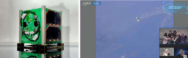 「KASHIWA」は千葉工業大学の学生によって開発された、1Uサイズの超小型人工衛星です。ミッションとして(1)宇宙産業分野での高度技術者の育成 (2)ステレオカメラ撮影による測距技術実証 (3)カメラによる地球観測 (4)Automatic Packet System (APRS)を使用した衛星経由でのデータ送受信技術の実証 (5)地磁気観測データの聴覚情報への変換実証 が期待されています。