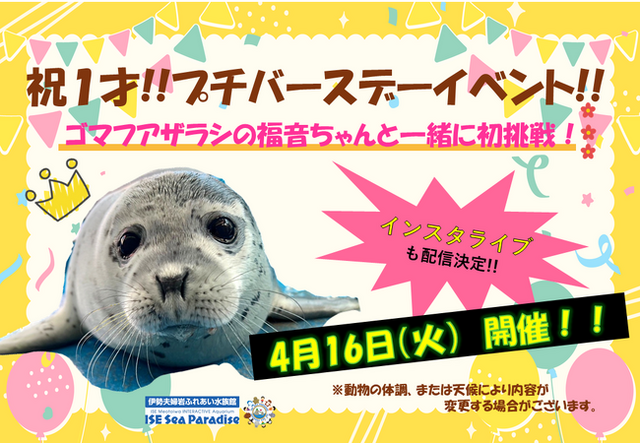 三重県伊勢市にある「伊勢シーパラダイス」では、去年の4月に生まれた可愛らしいゴマフアザラシの赤ちゃん『福音』が4月16日(火)に1歳を迎えることお知らせいたします。