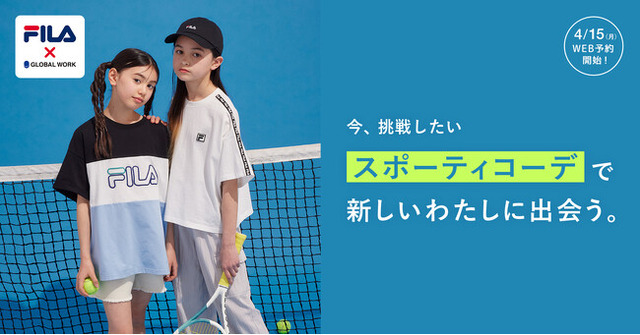 グローバルワーク キッズでは、小学校中学年~高学年の女の子に向けた“新しいファッション”として、ティーン世代を中心に支持を拡大しているFILAをコラボレーションパートナーにお迎えしました。現在のファッショントレンドである“COOL” “SPORTY”などのスタイルを取り入れ、「新しいファッションに、新しいわたしに、きっとワクワクする!」を叶えるスポーティコーデをご提案します。