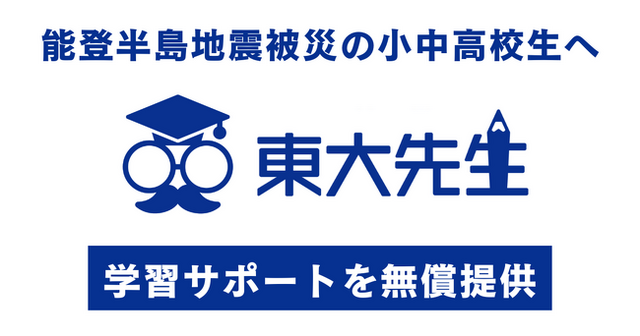 株式会社東大先生(代表取締役社長:堀井崇史)は、震災被害への支援として、東大生が厳選した教材集、解説集と受験対策有料セミナー動画を無償提供します。受験を希望する全ての生徒様の指導にご活用いただけますと幸いです。