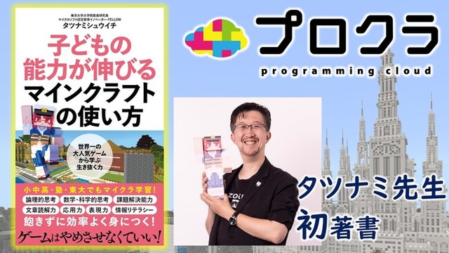 プロクラの学習環境でもあるマインクラフトの魅力を、「マインクラフト×教育」のプロフェッショナルである、日本初のプロマインクラフターのタツナミシュウイチ先生が語りつくした1冊です。
