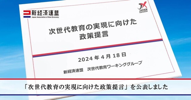 一般社団法人新経済連盟(所在地:東京都港区、代表理事:三木谷浩史)の次世代教育ワーキンググループは、2024年4月18日、「次世代教育の実現に向けた政策提言」を公表しました。