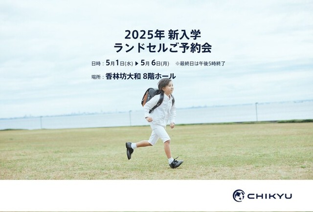 ランドセルの企画・販売を行うCHIKYU株式会社(旧池田地球株式会社、東京都港区、代表取締役:村尾光一)は、石川・大和香林坊店「2025年 新入学ランドセルご予約会」に参加いたします。