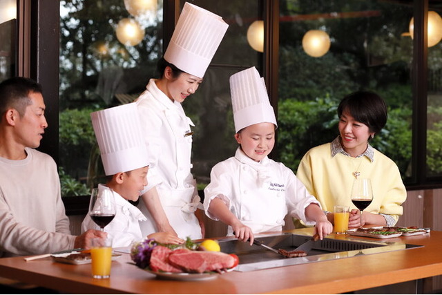 ホテルニューオータニ(東京)では、400年の歴史を有する広大な日本庭園内にひっそり佇む鉄板焼「もみじ亭」にて、お子さま連れのご家族にぴったりな“1日シェフ”体験付きのランチコースを、2024年5月3日(金・祝)~6日(月・休)のゴールデンウィーク期間限定で販売いたします。