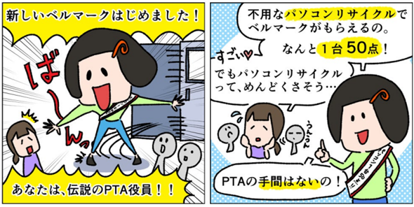 ベルマーク教育助成財団が掲げる「すべての子どもに等しく、豊かな環境のなかで教育を受けさせたい」理念に賛同し、協賛会社として新規加盟しました。従来のベルマーク活動とは異なり、パソコンリサイクルするだけで点数が貯まり、不用なパソコンリサイクル1台がベルマーク50点となる新しいベルマーク運動です。また、収集、集計などPTA役員の皆様が負担に感じる部分の軽減をお手伝いいたします。今回の取組を通して、子供達の教育環境充実、保護者負担の軽減を軸にベルマーク運動活性化にも取り組んでいきます。