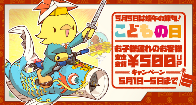 今回は、5月5日のこどもの日にちなんだお得なキャンペーンを開催します。ゴールデンウィーク真っ只中の5日間!旅行やお食事などご予定のある方も多いのではないでしょうか。是非、ゴールドプラザにて少しでも多くの軍資金をご用意してもらい楽しい連休をお過ごしくださいませ。