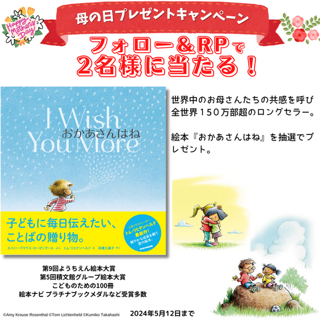 抽選で2名様に絵本『おかあさんはね』をプレゼントいたします。