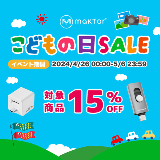 「日々増えるお子さんの写真や動画でスマホの容量がパンパン」「似たような写真に見えても、どれもかけがえのない瞬間だから全て残しておきたい」、そんな方にぜひおすすめしたい、簡単・スマホバックアップアイテムをお得に購入できる「こどもの日SALE」を開催します。GWの楽しい思い出を丸ごと保存しましょう。