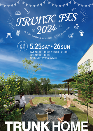 株式会社TRUNK HOME(本社:愛知県豊田市、代表取締役:浅野文崇)は2024年5月25・26日の2日間、TRUNK TOYOTA MODELにて『TRUNK FES 2024』を開催いたします。