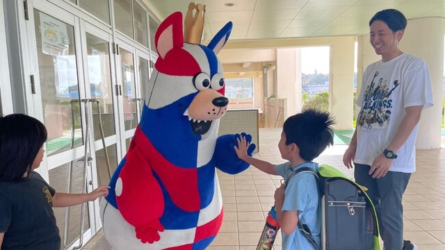 「おおきなわ」の活動の一環として行っている「ゴーディーによる朝のあいさつ運動」で、4月はホームタウン沖縄市、宜野湾市、那覇市の小・中学校にてあいさつ運動に参加しました。ご協力いただいた各小中学校の皆さま、ありがとうございました。