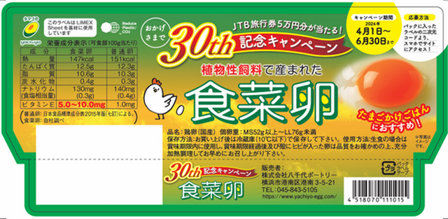 株式会社八千代ポートリーは、2024年4月に『食菜卵30周年キャンペーン』を開始しました。弊社の看板商品である「食菜卵」は、自社のNB(ナショナルブランド)商品として、おかげさまで販売開始から今年で、30周年を迎えることができました。これまで支えていただいた皆様へ、感謝の気持ちを込めまして、プレゼントキャンペーンを実施しています。