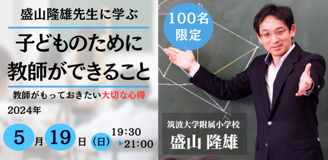 この度、私たちは2024年5月19日に、「盛山隆雄先生に学ぶ 『子どものために教師ができること』」という講座の開催を発表いたします。教師が算数の授業と学級経営を通じて子どもたちのために何ができるかを深く探求するセミナーです。教師としての役割と責任を再考し、子どもたちが主体的に学ぶ環境を創るための具体的な手法を学びます。