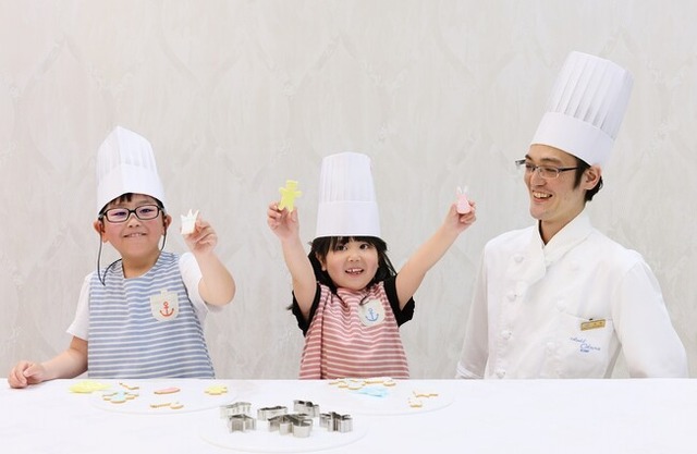 教室では、家庭でできるロールケーキの作り方のデモンストレーションを見学した後、ホテルパティシエと一緒に、ロールケーキのデコレーションとクッキーのアイシングに挑戦。初めてお菓子を作るお子様でも、自由な発想で作る楽しみを体感していただけます。終了時には、キッズシェフ認定証のプレゼントやシェフが用意するケーキの試食もございます。また、作ったケーキとクッキーはお持ち帰りいただけます。