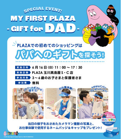 父の日に、PLAZA 玉川高島屋S・C店にて、父の日のギフト探しとお仕事体験を楽しんでいただく、3~6歳のお子様を対象としたイベント「MY FIRST PLAZA -GIFT for DAD-」を開催します。母の日に行った同様のイベントでは、予想を超えるご応募をいただいた大人気企画です。明日5月8日(水)よりPLAZA公式サイトにて参加者の募集(※抽選)を開始します。奮ってご応募ください。