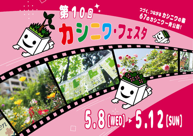 - 【第10回記念】カシニワ・ワードラリーの実施カシニワ・フェスタ期間中に各カシニワに4種類の文字を1文字ずつ掲示します。フェスタ来場者には、各カシニワの文字を見つけ、4文字のキーワードを完成させていただきます。商品引換所にキーワードを記入した参加用紙を持参すると、参加賞と特別賞(先着順)と引換ができます。(引換期間は5月8日(水)から5月22日(水)まで)