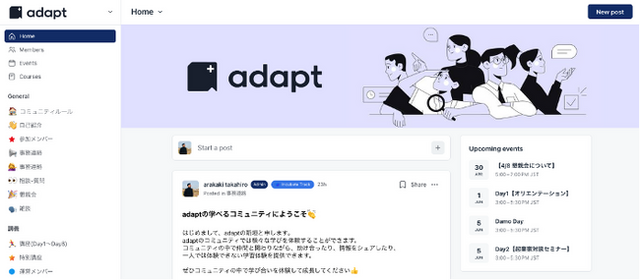 adapt株式会社(以下、「adapt」)は、講師を交えたコミュニティ型学習※1により仲間と「学び・教え合う」環境をつくることができる、学べるコミュニティプラットフォームを本格リリースいたします。