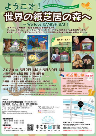 大阪府立中之島図書館では5月2日(木)より、「ようこそ!世界の紙芝居の森へ~We love KAMISHIBAI!」と題し、海外の紙芝居作家と紙芝居作品を中心に日本のアートな紙芝居作家の作品等もご紹介します!皆様のお越しをお待ちしております!