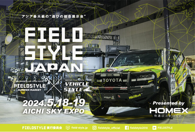 FIELDSTYLE実行委員会(代表 清水俊英/UNDERLINE株式会社 愛知県岡崎市)は、2024年5月18日(土)~19日(日)にAICHI SKY EXPO 愛知県国際展示場で「FIELDSTYLE JAPAN」を開催します。