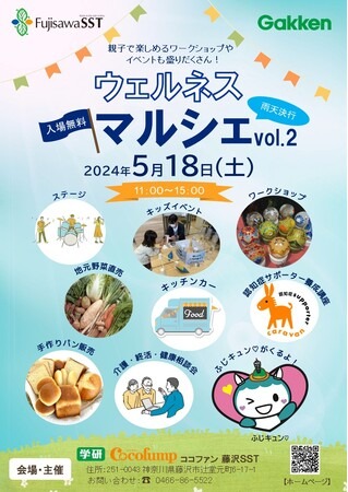 株式会社 学研ホールディングス(本社:東京都品川区/代表取締役社長:宮原博昭)のグループ会社、株式会社 学研ココファン(本社:東京都品川区/代表取締役 兼 COO:森 猛、以下当社)は、運営拠点である「FujisawaSST ウェルネススクエア南館」で地域の方々に向けた「ウェルネスマルシェ」を開催いたします。