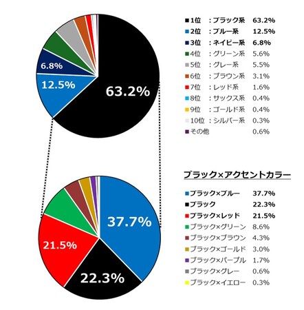 ●男の子の人気カラー1位は、ブラック系で全体の約63%
