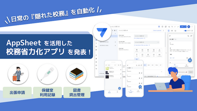 今回は先生方の校務を効率化するアプリとして「出張申請アプリ」「保健室利用記録アプリ」「図書貸出管理アプリ」の3つをご紹介いたします。