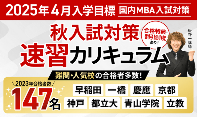 2025年4月入学目標の国内MBA秋入試対策速習カリキュラム・冬入試対策カリキュラムをリリースいたしました。