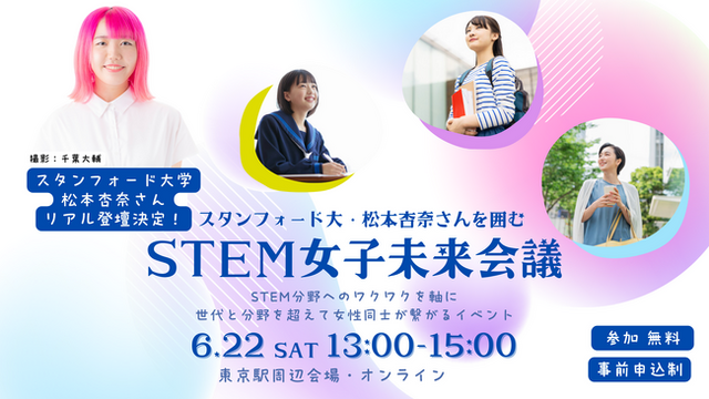 - タイトル:「スタンフォード大・松本杏奈さんを囲む STEM女子未来会議」