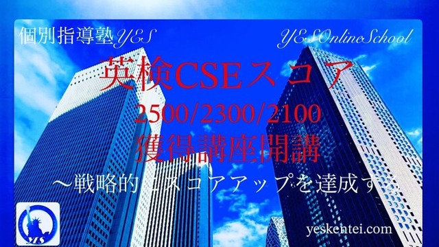 船場物産株式会社(本社:大阪府東大阪市、代表取締役 安田周平)が運営する、個別指導塾YES 及び YESオンラインスクール( https://yeskentei.com )は、2024年5月、英検CSEスコアのハイスコアのみを優先して早期獲得し、大学入試や就活に有利に利用して頂くことを目的とした、【英検CSEスコア2500/2300/2100獲得講座】( https://yeskentei.com/custom/cse/ )を新設しましたことをお知らせ致します。