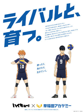 小学生・中学生・高校生を対象とした進学塾を運営する株式会社早稲田アカデミー(本社:東京都豊島区、代表取締役社長:山本豊)は、創業以来変わらない「本気でやる子を育てる」という教育理念に基づき、早稲田アカデミー独自の価値「ワセ価値」を提供しています。このたび、早稲田アカデミーの教育理念・企業姿勢を広く発信するためのキャンペーンとして、バレーボールに懸けた青春を描く国民的スポーツアニメ「ハイキュー!!」とのコラボレーションを開始したことをお知らせ致します。