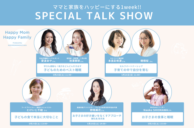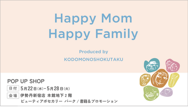 子育てファミリーを中心に、SNSで活躍中のプロフェッショナル達が伊勢丹新宿店に集まります!ママ達がもっと早く知っておきたかった子どもの睡眠や食事、学びへの向き合い方からママ自身のケアまで。連日のお話会やトークショー、日々の生活が少し豊かで丁寧になるアイテムなどなど。伊勢丹新宿店にて2024年5月22日(水)から5月28日(火)までのお祭りみたいな一週間です。