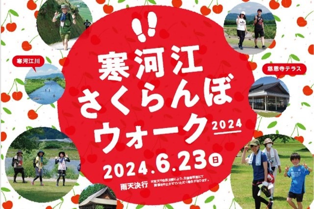 「さくらんぼの里」である山形県寒河江市にて「寒河江さくらんぼウォーク2024」が開催されます。寒河江の豊かな自然や歴史、文化や食など自分のペースで歩きながらゆっくりとご体感ください。エイドステーションでは寒河江自慢のさくらんぼ(紅秀峰)や冷たい肉そばを提供いたします。その他、歩きながら寒河江の魅力を知ることができるさがえまちがいさがしなど楽しいコンテンツをご用意してお待ちしております。