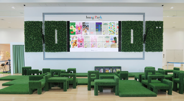 本施設の2階に位置する五感を楽しむ公園「hu+g Park」の大幅リニューアルに伴い、新たな体験型コンテンツとしてGENEROSITYが提供するインタラクティブ型サイネージシステム『SwipeART』を導入いただきました。デジタル空間とリアル空間をつなぎ、シームレスなユーザー体験を実現させる本サービスの常設導入では、来場者は会場内で自身のスマートフォンで撮影した写真を自由にカスタマイズすることができ、施設内に設置の大型ビジョンに向かってスワイプすると瞬時にアニメーションとして投影されます。来場者のたくさんの笑顔の写真が映し出されるとともに、作成したデータはSNSへの投稿や壁紙として活用することも可能になります。
